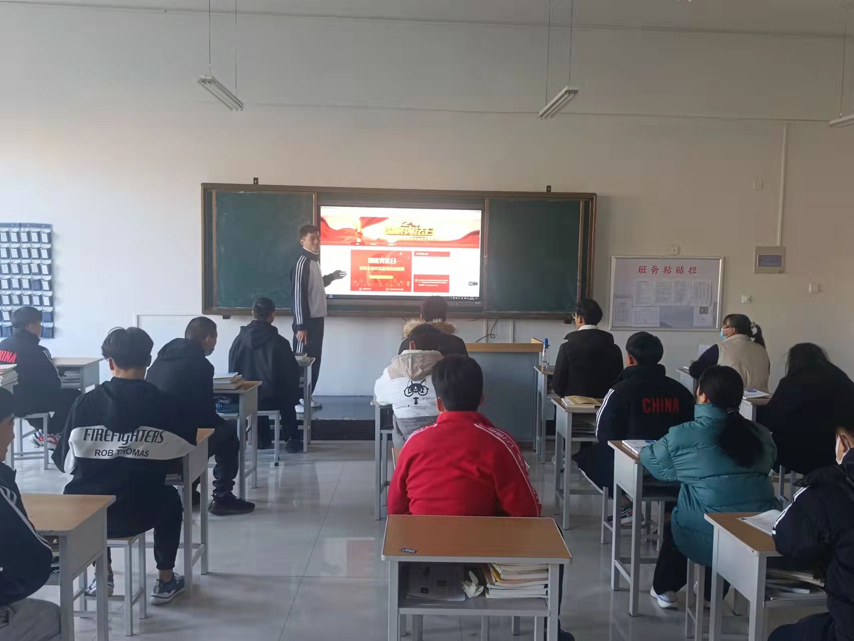 国徽高悬,熠熠生辉;宪法至上,深入人心。123日文化传播系所有老师都按照学院安排,暂停手中的教学工作,让出时间,使学生深刻体会宪法至上。截至早上900,我系所有班级都已做好准备,由老师、班委组织学生通过媒体设备或教学一体机准时观看“宪法晨读”活动直播。直播进行到宋德民同志领读时,我系所有班级跟随直播一起朗诵宪法部分条款,学习宪法知识。随后,和着直播优美的背景音乐,我系全体师生起立齐唱宪法主题歌曲《宪法伴我们成长》,共同体会宪法的温度、感受宪法的力量、树立宪法的权威。