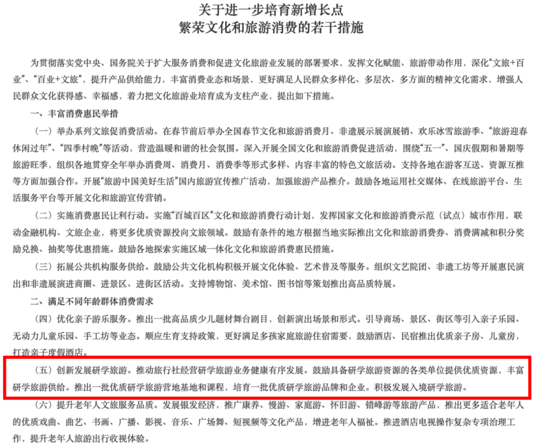 2025年1月,国办文件首次正式提出“创新发展研学旅游”,“研学旅游”开始进入国家层面正式文件。不久前发布的“十五五”规划纲要相关表述中,我们也看到“规范发展研学旅游”的表述。由此可见,“研学旅游” 已成为国家层面官方话语。