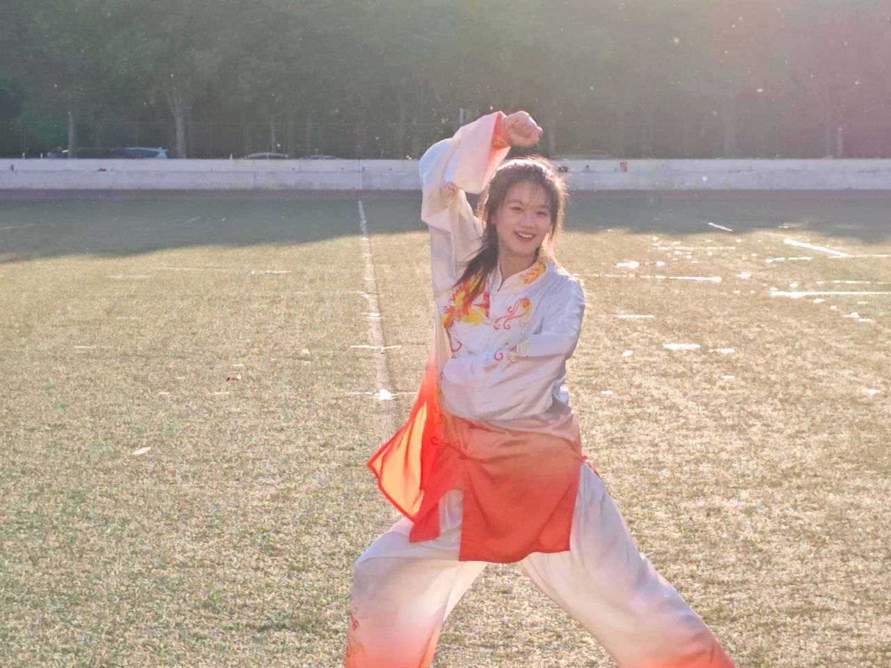 在2024年4月25日河南中医药大学22届田径运动会开幕式,阴羿佳与学院其他45名同学在本科部主任岳朝坤、教练张贵濮带领下,在现场为大家呈现一场精彩绝伦的武术视觉盛宴。